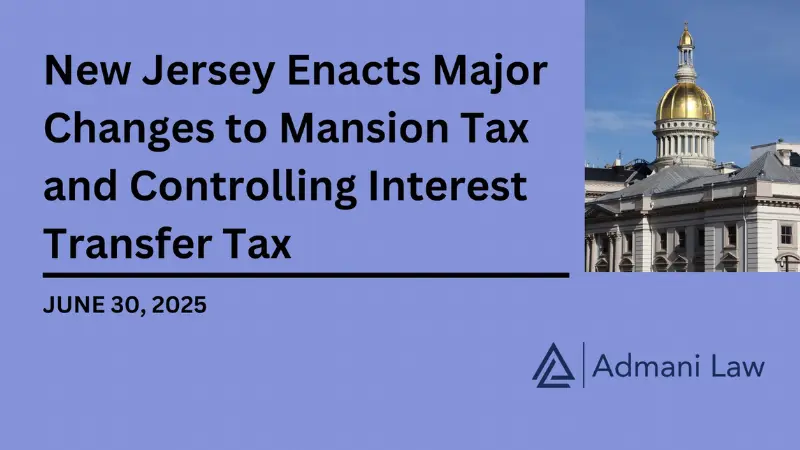 New Jersey Enacts Major Changes to Mansion Tax and Controlling Interest Transfer Tax